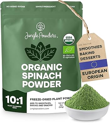 Organic Spinach Powder from Whole Leaf 5 Ounce Bag USDA Certified - Antioxidant Rich Smoothies Fresh Freeze Dried Spinach Leaves Extract for Immune Support - Espinaca Rich In Beneficial Thylakoids